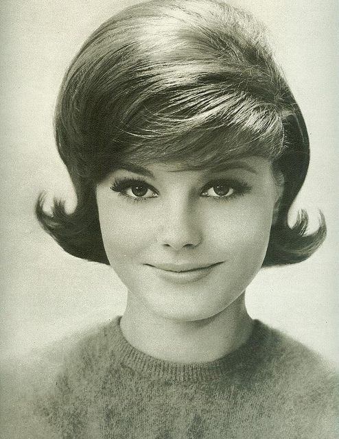 Именно в те времена расцветала эпоха хиппи — с ее косичками, небрежными укладками, яркими лентами и украшениями в виде лилий или полевых цветов. И в то же время девушки предпочитали женственные мягкие линии, гладкие укладки и игривые челки.