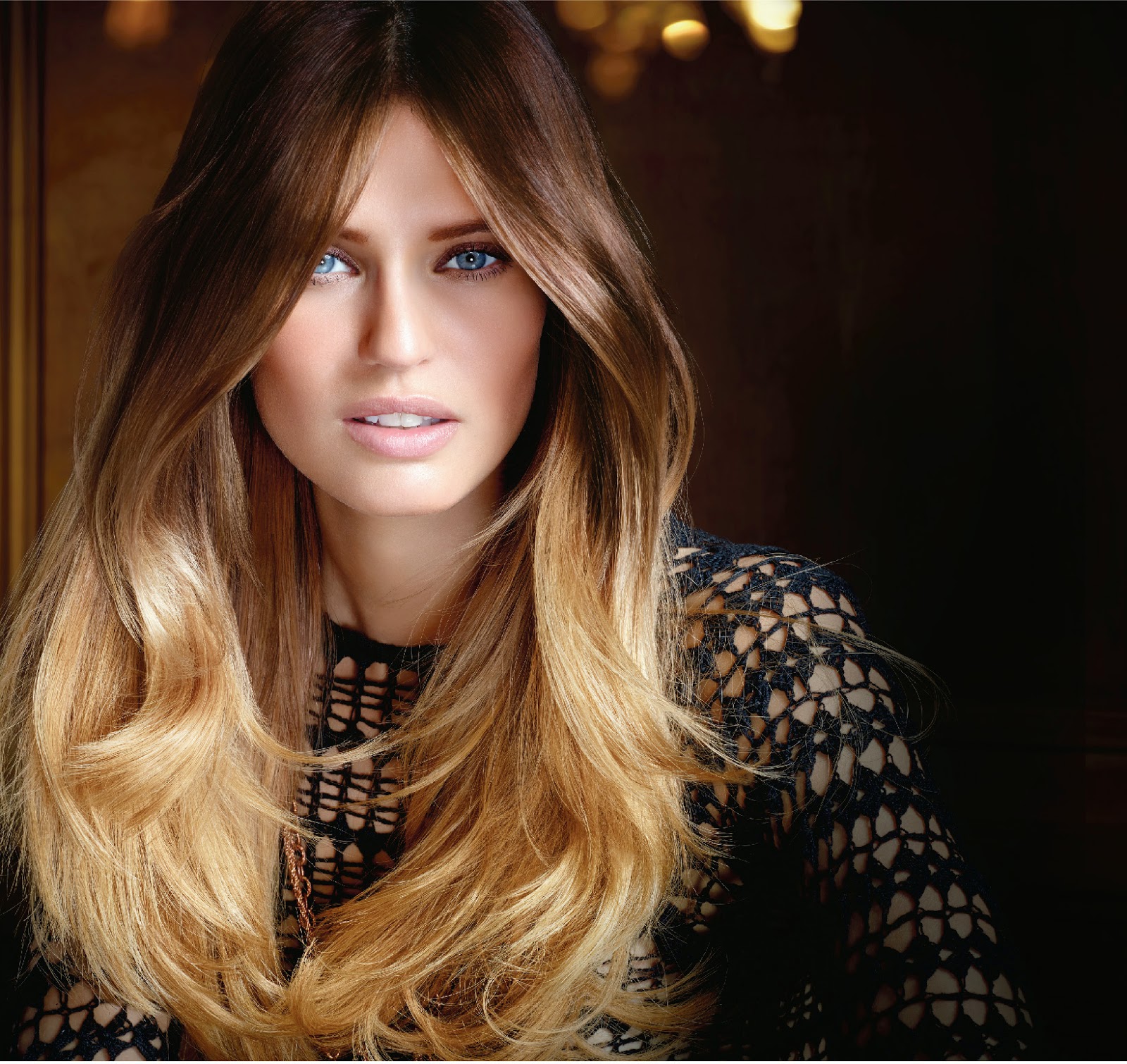 - Девушкам со светлыми прядками и с глазами синего, зеленого или светло-карего цвета, которых относят к цветотипу «Весна», лучше выбирать обратное омбре с переходами от более темного цвета к натуральному.
