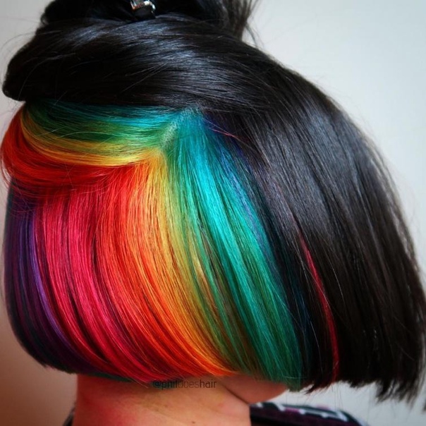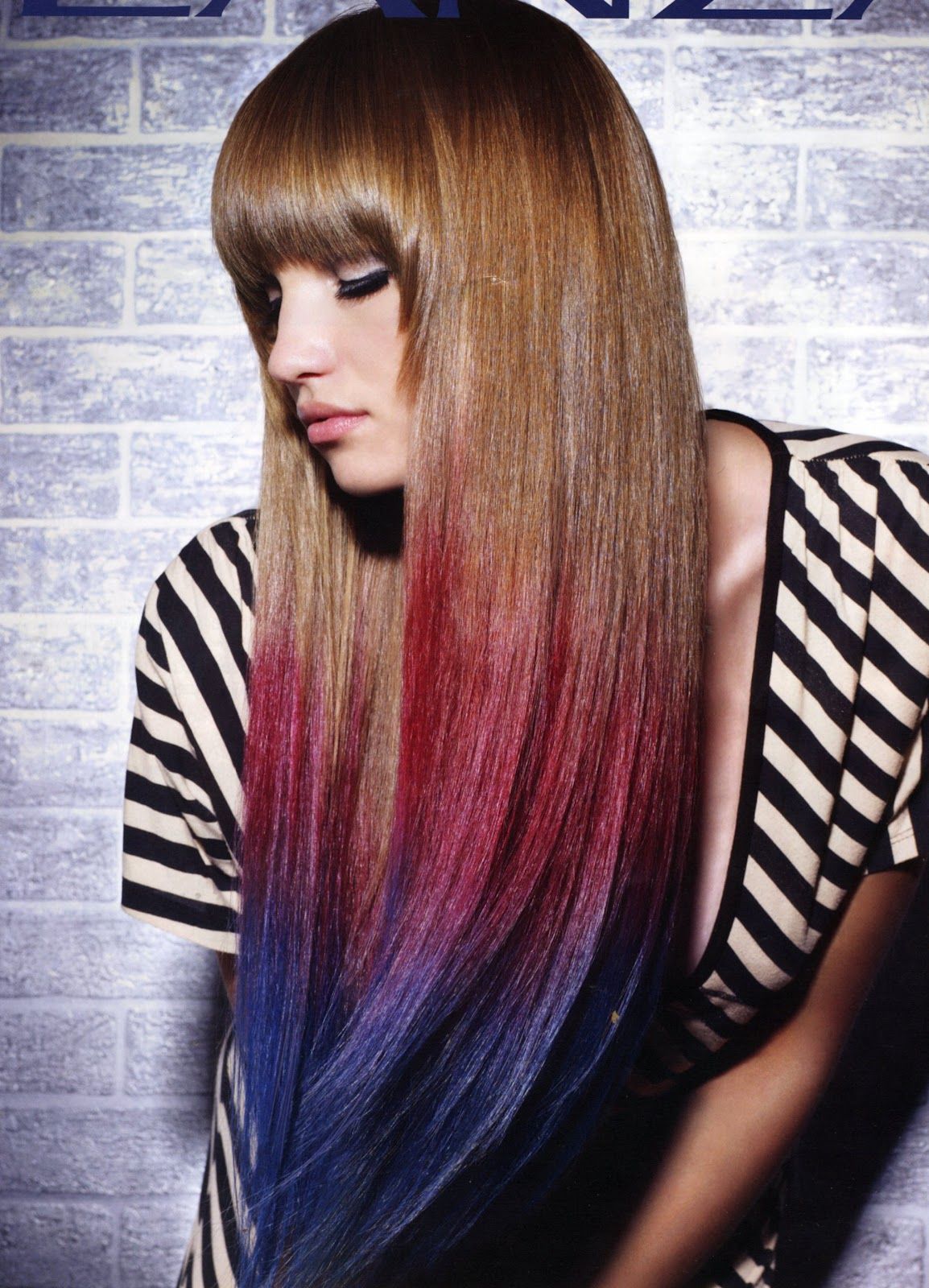 Любительницы неординарных образов могут остановить свой выбор на ярких цветах. Зональное выделение красными, малиновыми, синими, зелеными, желтыми и другими прядками подчеркнет индивидуальность стильных и дерзких барышень.