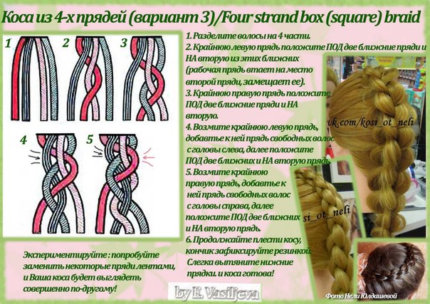 Схема плетения косы из 4 прядей и пошаговая инструкция