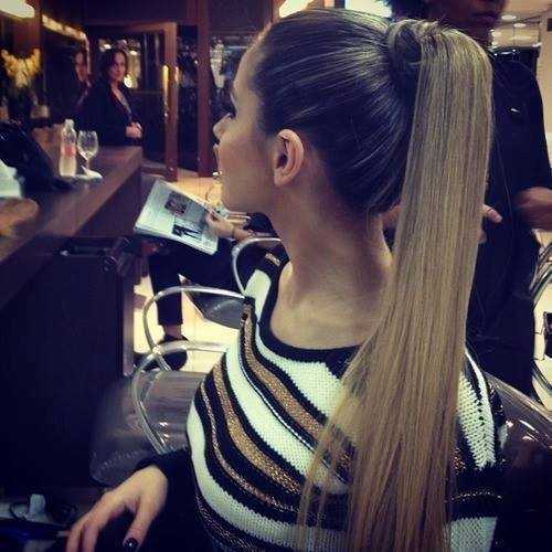 Укладка конский хвост весьма популярна среди знаменитостей, несмотря на простоту и на первый взгляд не оригинальность, высокий хвост смотрится очень эффектно на длинных волосах.
