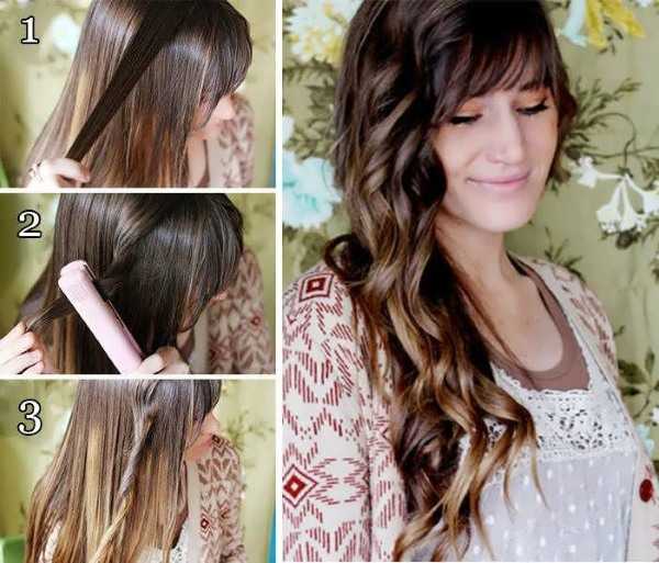 Для укладки можно использовать не только плойку, но и утюжок, только держать его необходимо под наклоном, чтобы получить необычные локоны, и аккуратно от корней тянуть прядь вниз. Если необходима быстрая укладка, то можно завить только кончики и отправляться на любое мероприятие.