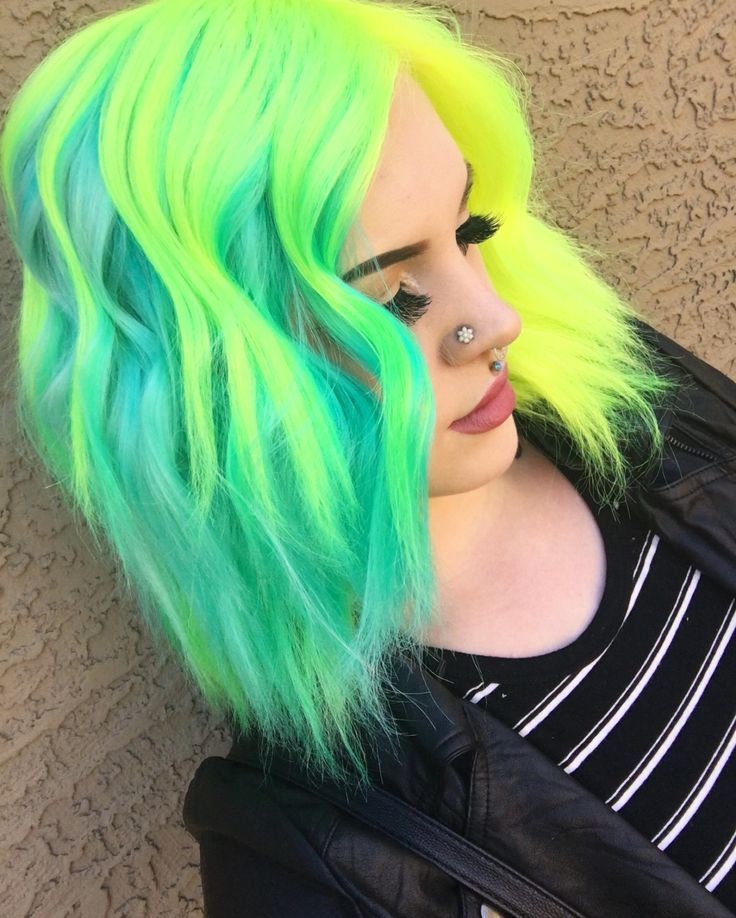 Поговорим о свежем цвете волос! Ярко-зеленый — это насыщенный цвет, который создает летнее настроение. Чтобы ваш зеленый цвет был как можно более ярким, используйте
